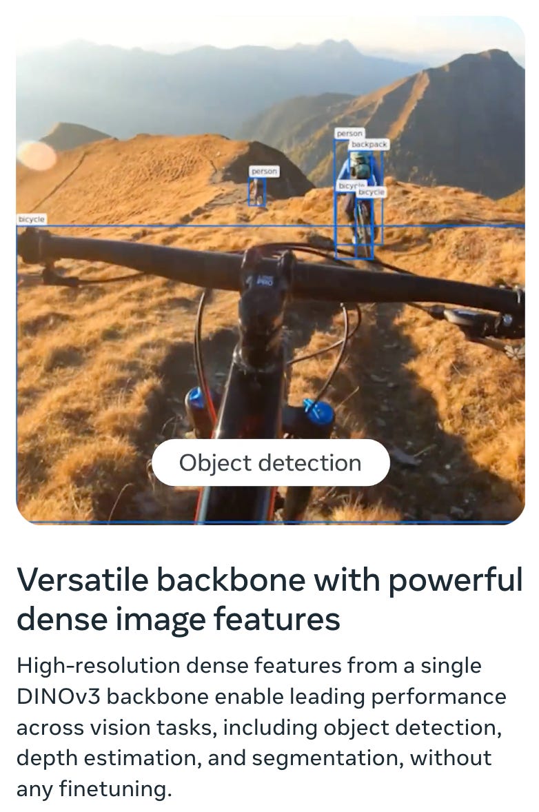DINOv3 belongs in the same family. It’s not a flashy demo model. It’s a representation backbone. The kind of thing you build on when you want stable features, stable objects, stable handles.