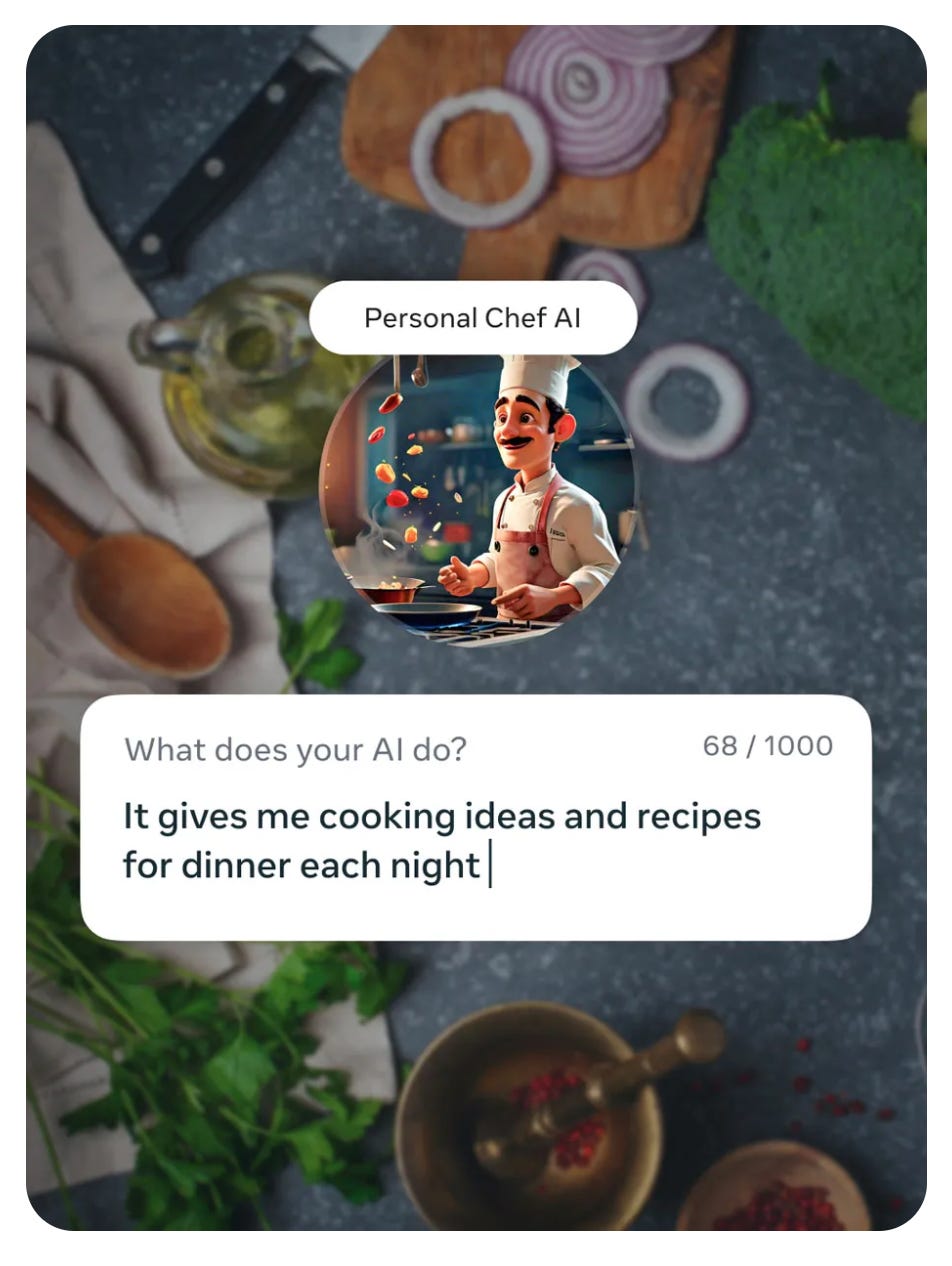 Meta AI Studio is the clearest example. It’s not “a platform feature”. It’s a mechanism for filling the Cocoon with agents (characters, helpers, and AI-extensions of real people) without Meta needing to author them one by one.