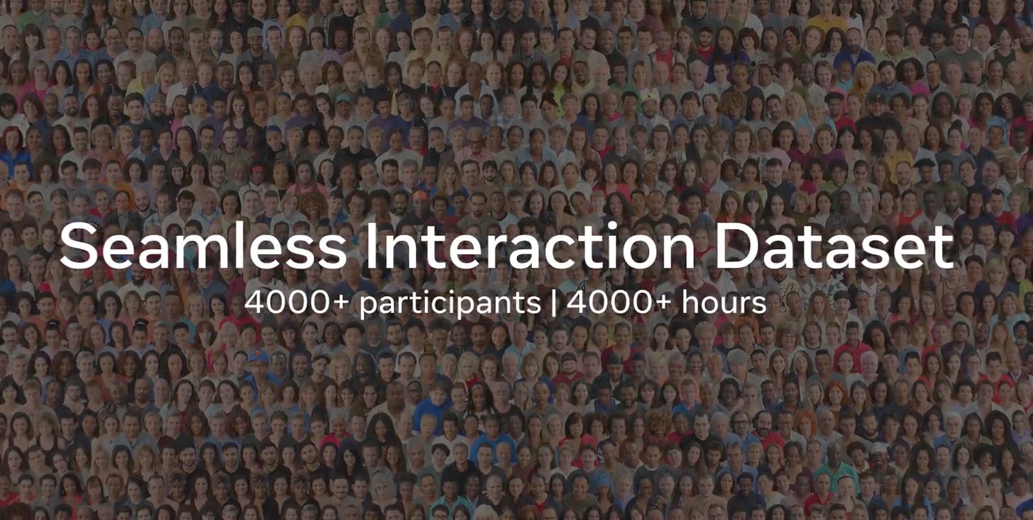 Then the Seamless Interaction Dataset extends the idea further - thousands of hours of dyadic, face-to-face interactions, with prompts designed using the interpersonal circumplex framework, and annotations for turn-taking and non-verbal dynamics.