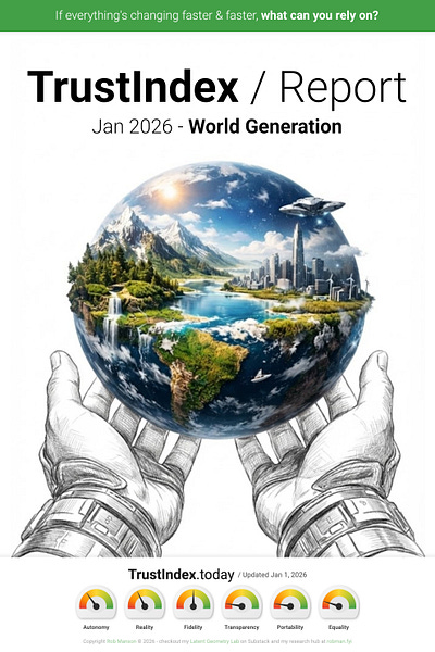 Each TrustIndex / Report is my attempt to track that slope - not the hype cycle, not the launch theatre. Each one is an instrument panel plus a signal map - what moved, why it matters, and where the incentives are pushing next. Autonomy. Reality (mediation). Fidelity, Transparency, Portability, and Equality.